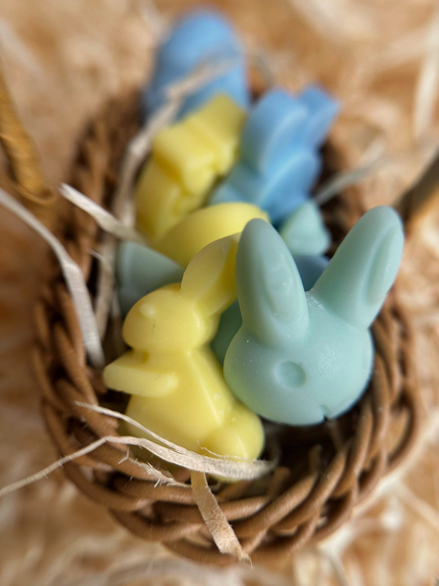 Notre mini panier de Pâques est rempli de fondants parfumés "velvet cashmire". Ils sont soigneusement colorés aux couleurs pastels de printemps. Ils parfumeront votre maison de senteurs agréables, créant une ambiance apaisante et chaleureuse. Idéal pour un cadeau de Pâques fait maison et parfumé.